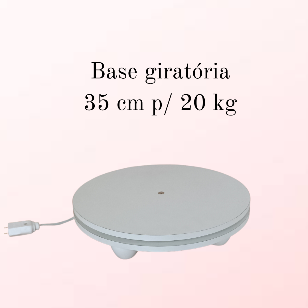 Base giratória com pé, ideal para chão, mesa, vitrines, aguenta 20 kg, é bivolt