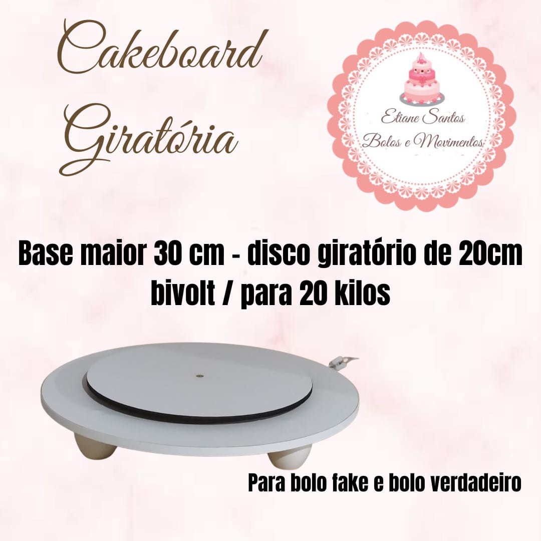Cakeboard giratória - ela gira o bolo todo, a base de MDF tem 30 cm , e a que gira tem 20 cm, pode usar discos em cima do mesmo tamanho ou maior,